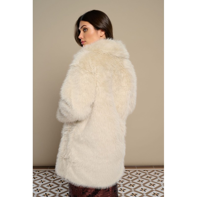 Abrigo de pelo sintético con cuello solapa. Forro interior. Cierre con enganche.