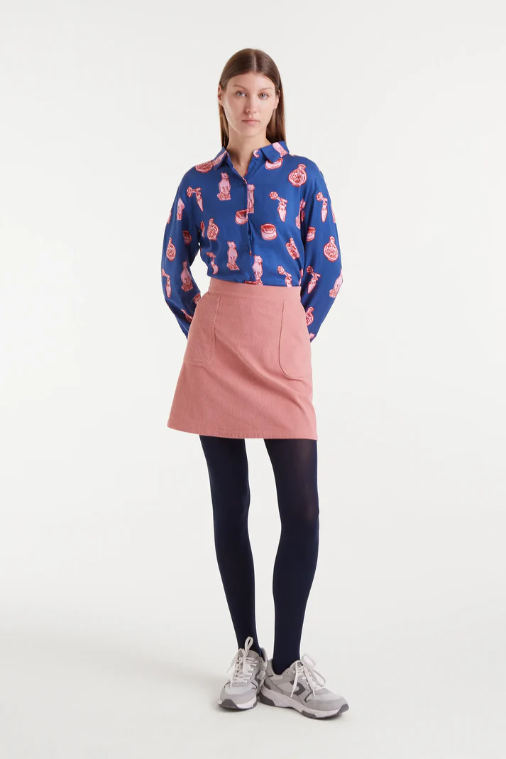 Camisa con estampado Porcelain. Cuello con escote solapa y manga larga terminada en puño con botón.